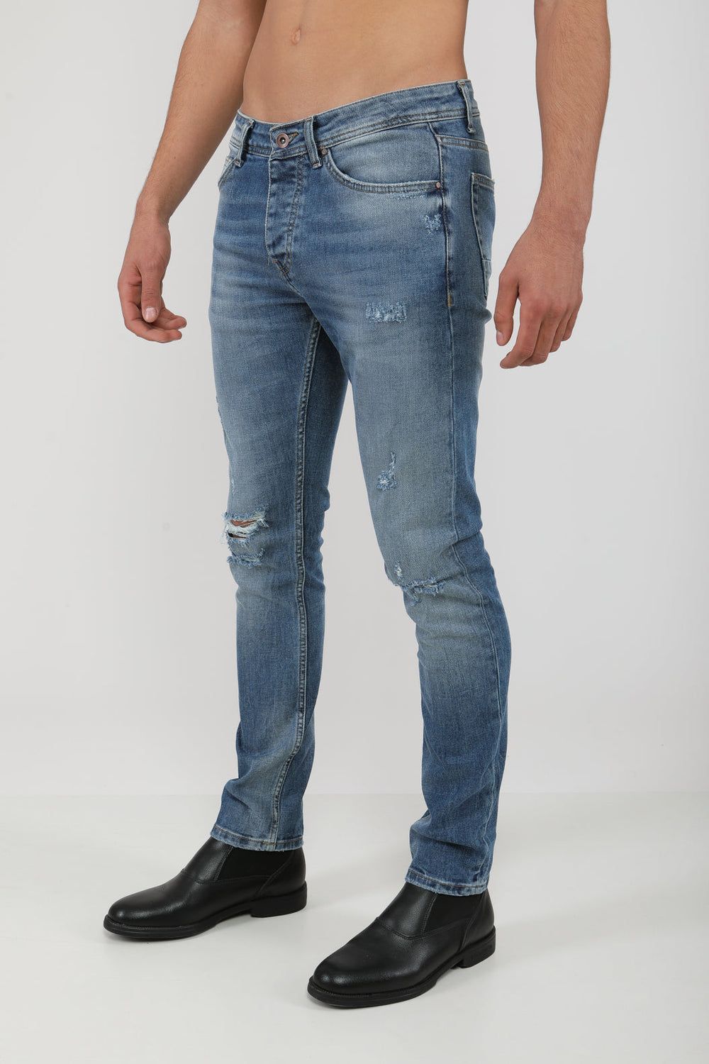 pantalon blue coupe slim fit à effet déchiré