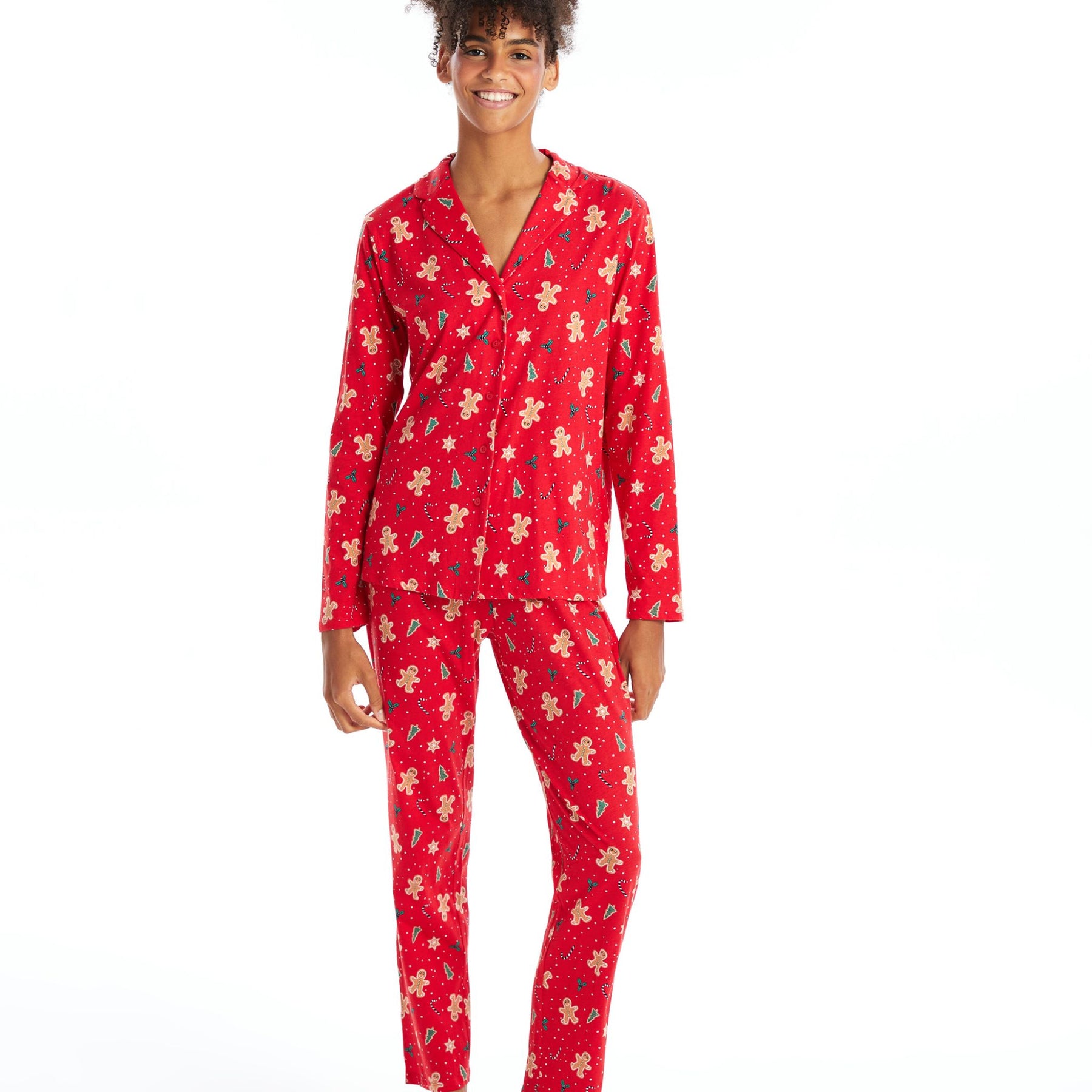 Pyjama en jersey manches longues Femme Impression rouge vif
