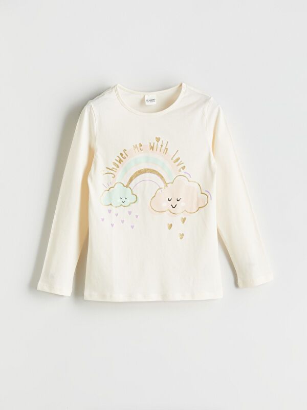 Moudda LC Waikiki - Pyjama en jersey manches longues moyen Fille Ecru - Tunisie 1