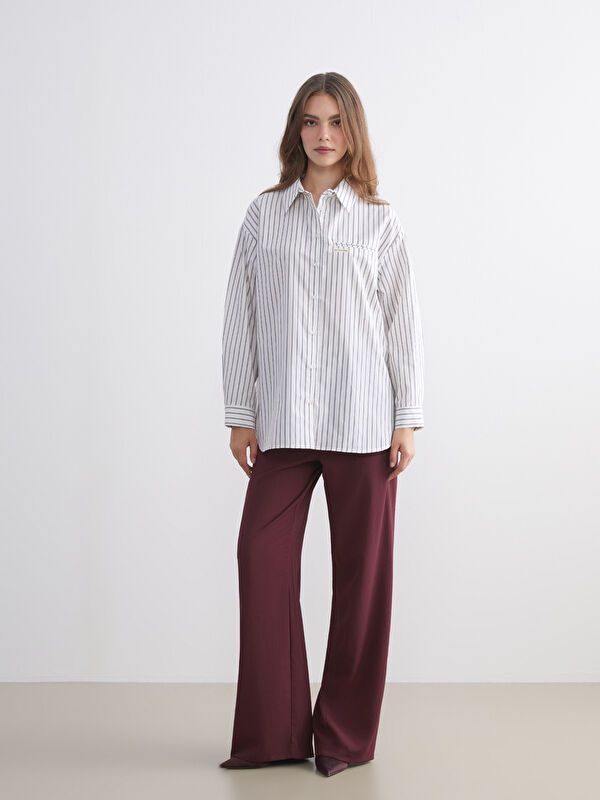 Moudda LC Waikiki - Tunique tissée manches longues Femme Rayures bleues - Tunisie 3