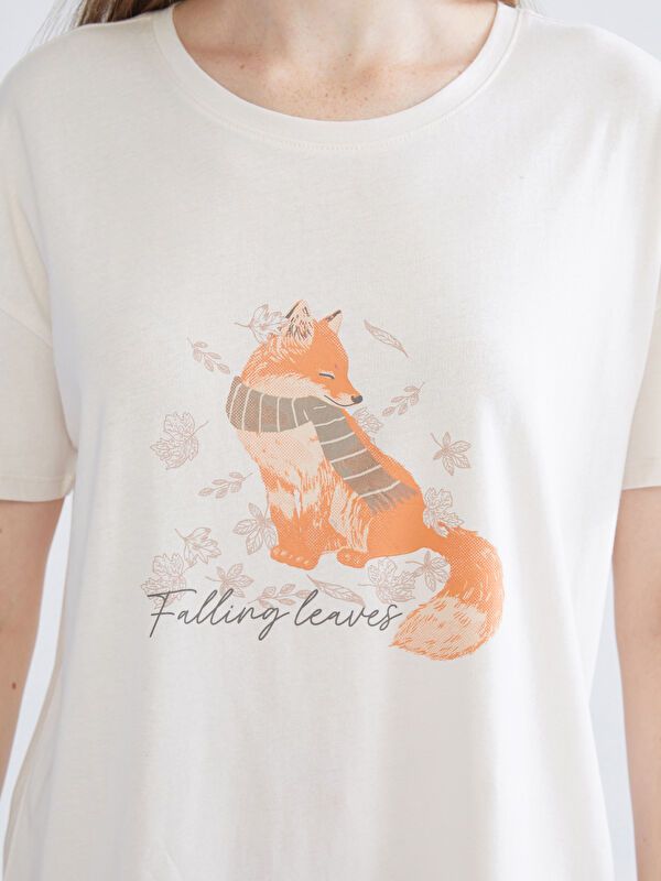 Moudda LC Waikiki - Pyjama jersey manches courtes Femme Crème imprimée - Tunisie 4