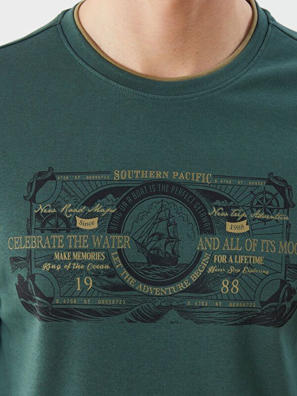Moudda LC Waikiki - Sweatshirt jersey imprimé basique Homme Vert moyen - Tunisie 3